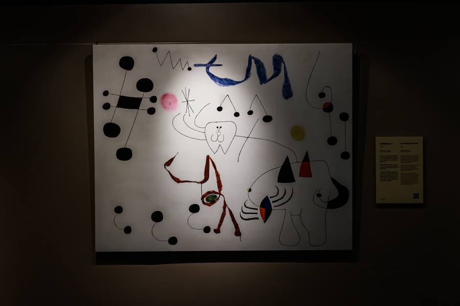 米罗以独特的视觉语言著称,作品充满了象征符号、梦幻的形态与明快的色彩,他在现代艺术史上独辟蹊径,创作游走于诗歌与绘画之间,将日常世界转化为奇幻之境,探索无意识和想象力的自由,视其为取之不尽、用之不竭的灵感源泉。本次展览的每件展品均严格遵循原作尺寸、色彩与质感进行复刻,经改造后的地铁空间更是复现了巴塞罗那胡安·米罗基金会的艺术氛围。通过米罗的作品,人们或许可以窥见地中海炎热的阳光对米罗精神的特殊影响。